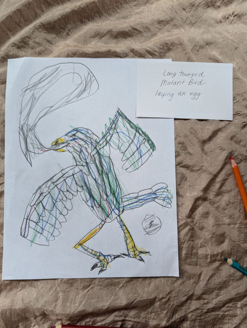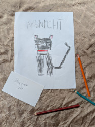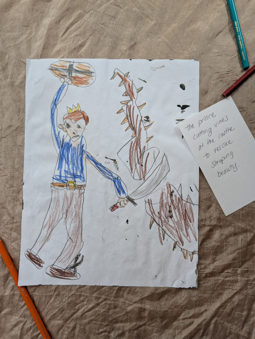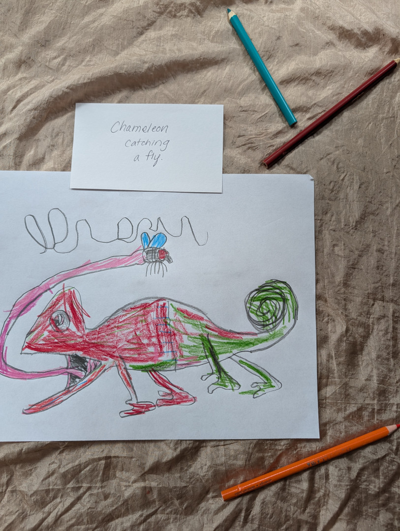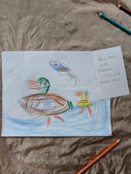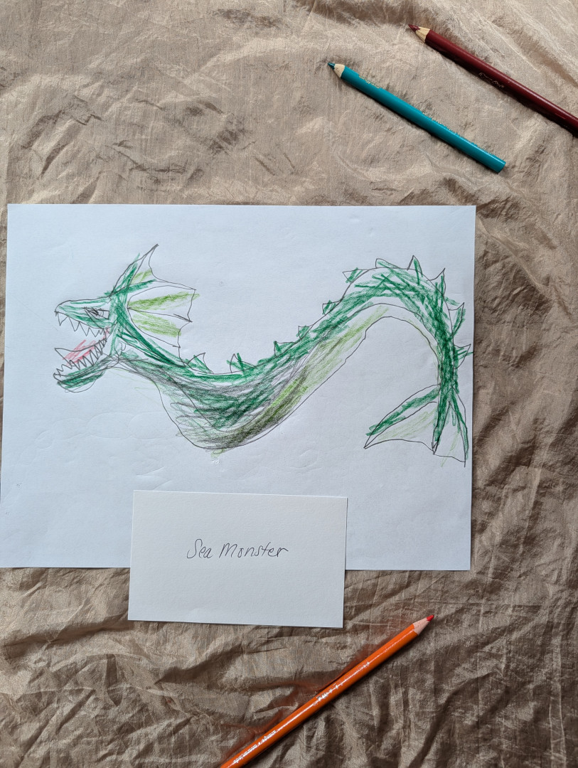 Aiden (6) draws many pieces a day. Anything that interests him he recreates on paper! He's kind hearted & and his work lights up our home.