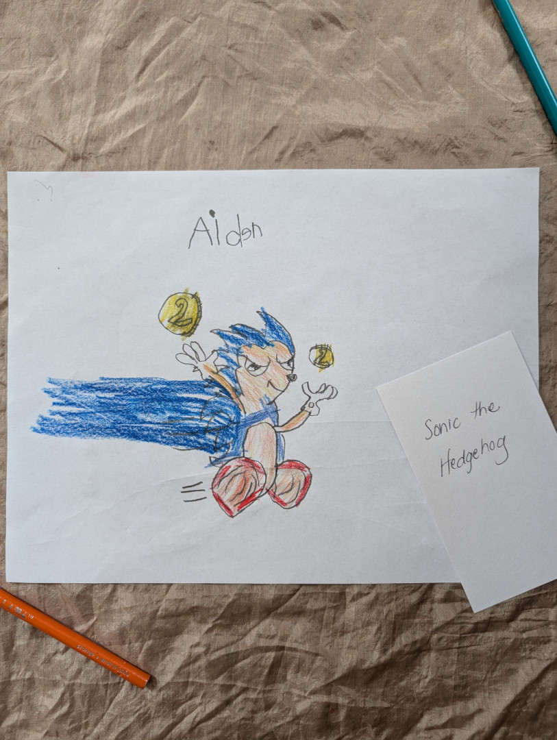 What is Aiden's favorite art form?Aiden primarily spends his creative time drawing. He uses colored pencils, markers, and pens on paper.
