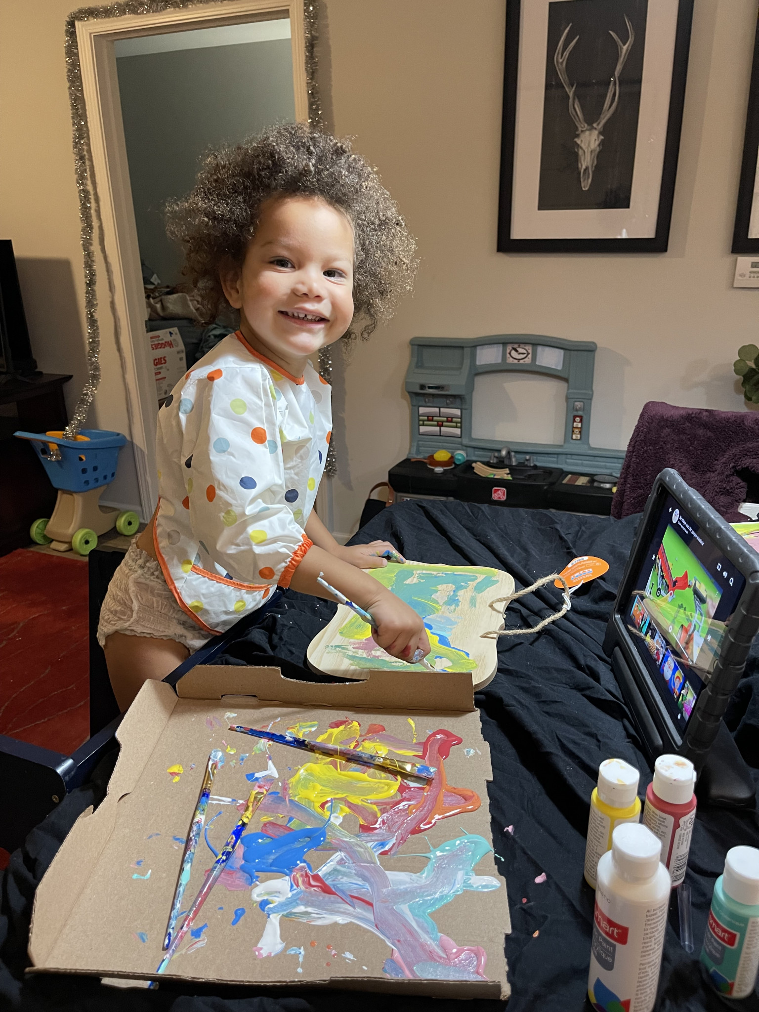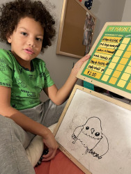 I think my kiddo is the most creative, turning everyday objects or discarded items into art. He uses all kinds of mediums, and makes magic!