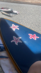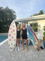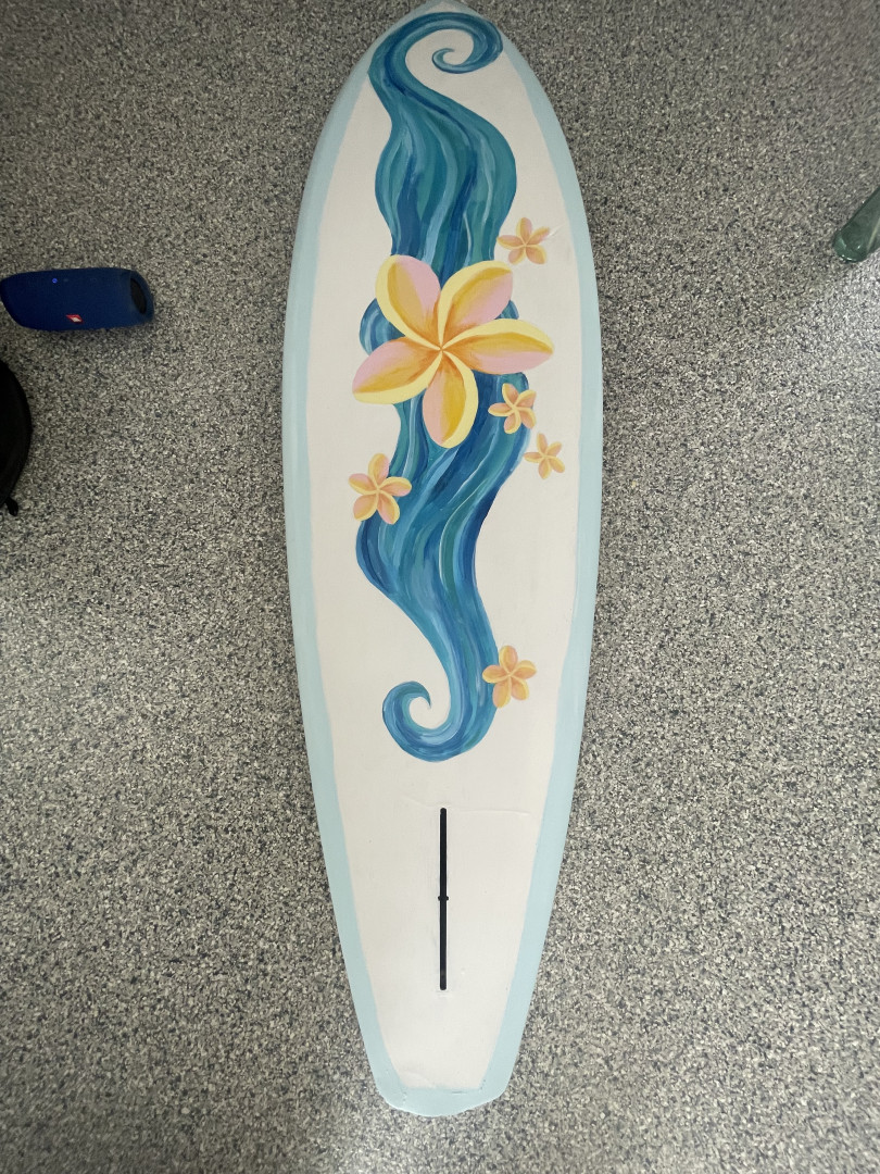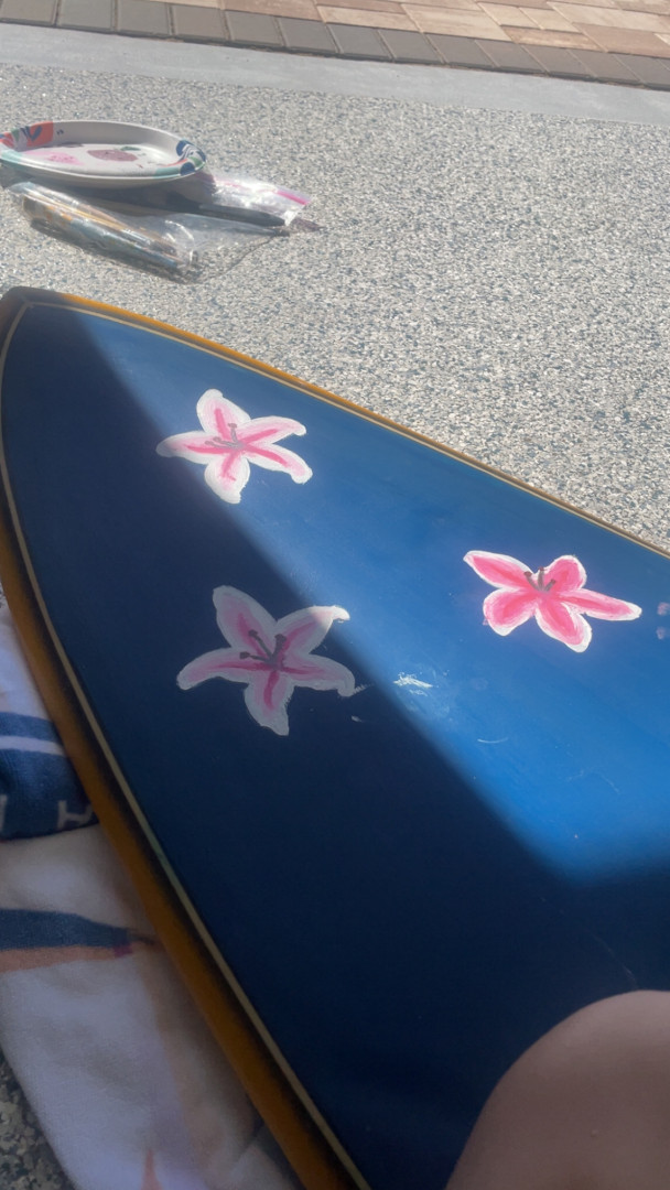 She loves to paint old surfboards
