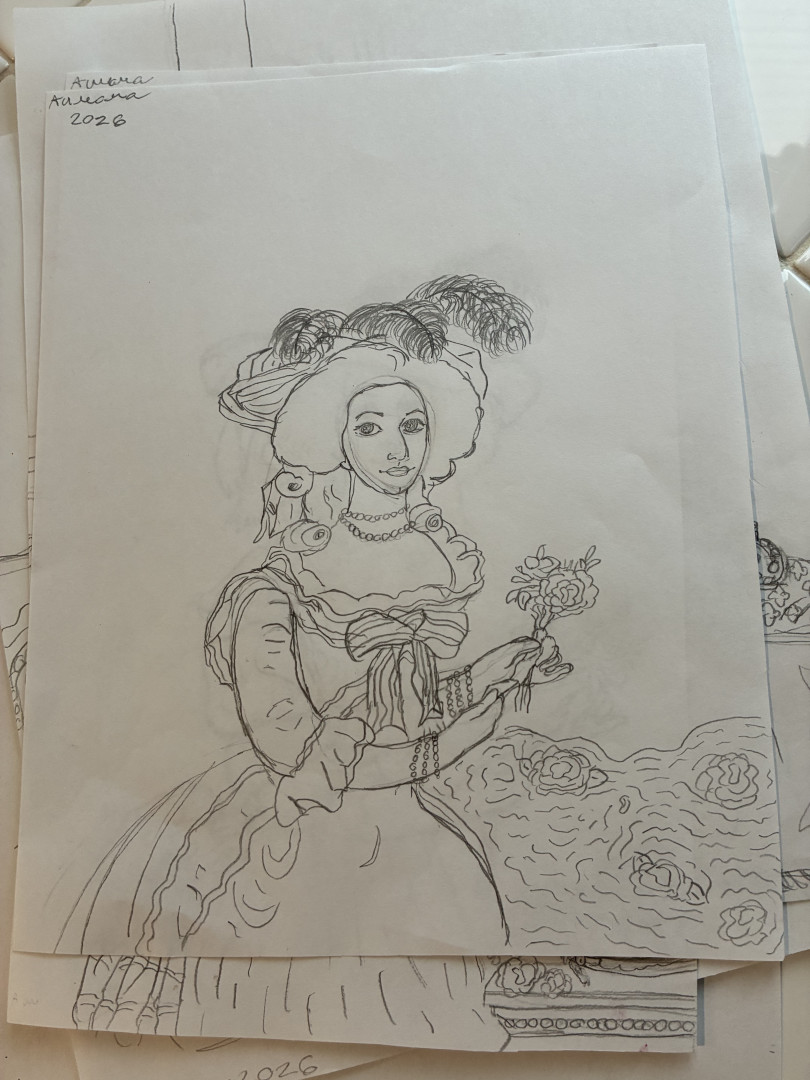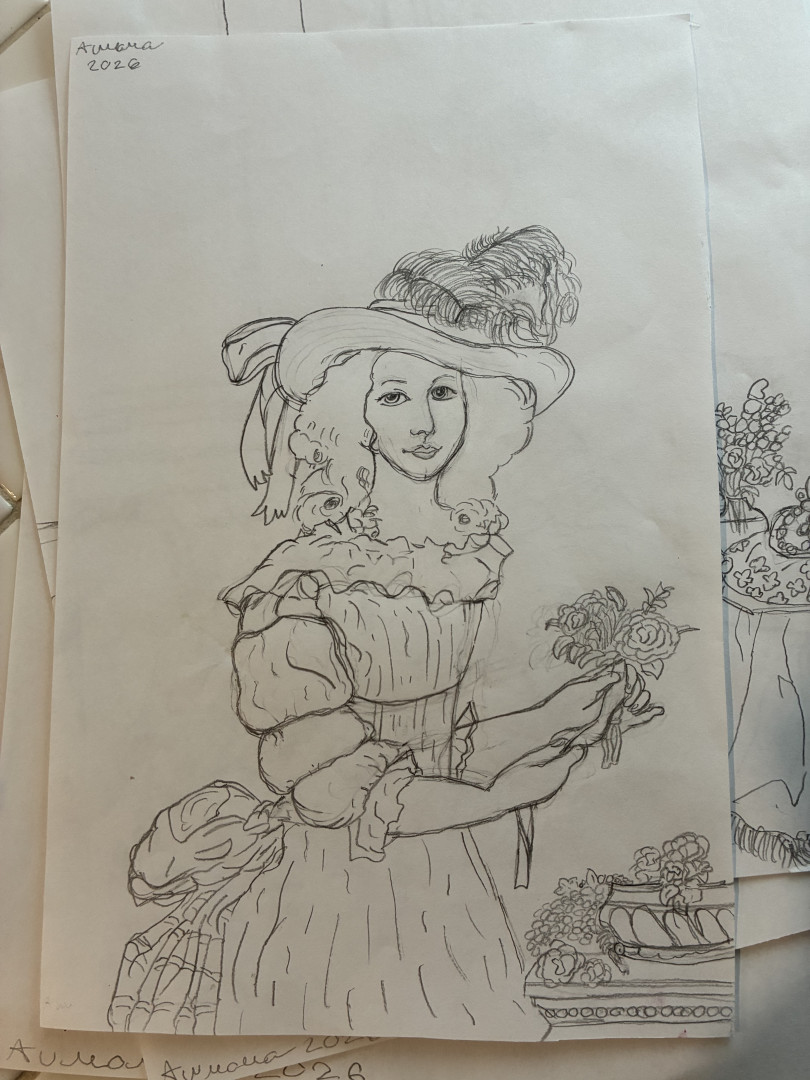 What is Aurora's favorite art form?Aurora favorite art form is water color, crayon, pencil. She loves to draw a lot of images from the 18th century especially woman and portraits of actresses.