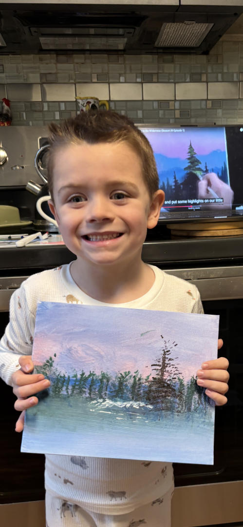 Learn MoreAvery has been watching Bob Ross with his grandmother since he was 3 years old. He took his first shot at panting himself when he was 5, and since that first painting, Avery’s love for art has grown and grown. Avery has about 25 paintings so far, all mostly from Bob Ross episodes, but he had also started using his imagination to make his own original works. Avery uses different mediums like watercolors, acrylic, and has even done a few oil paintings.