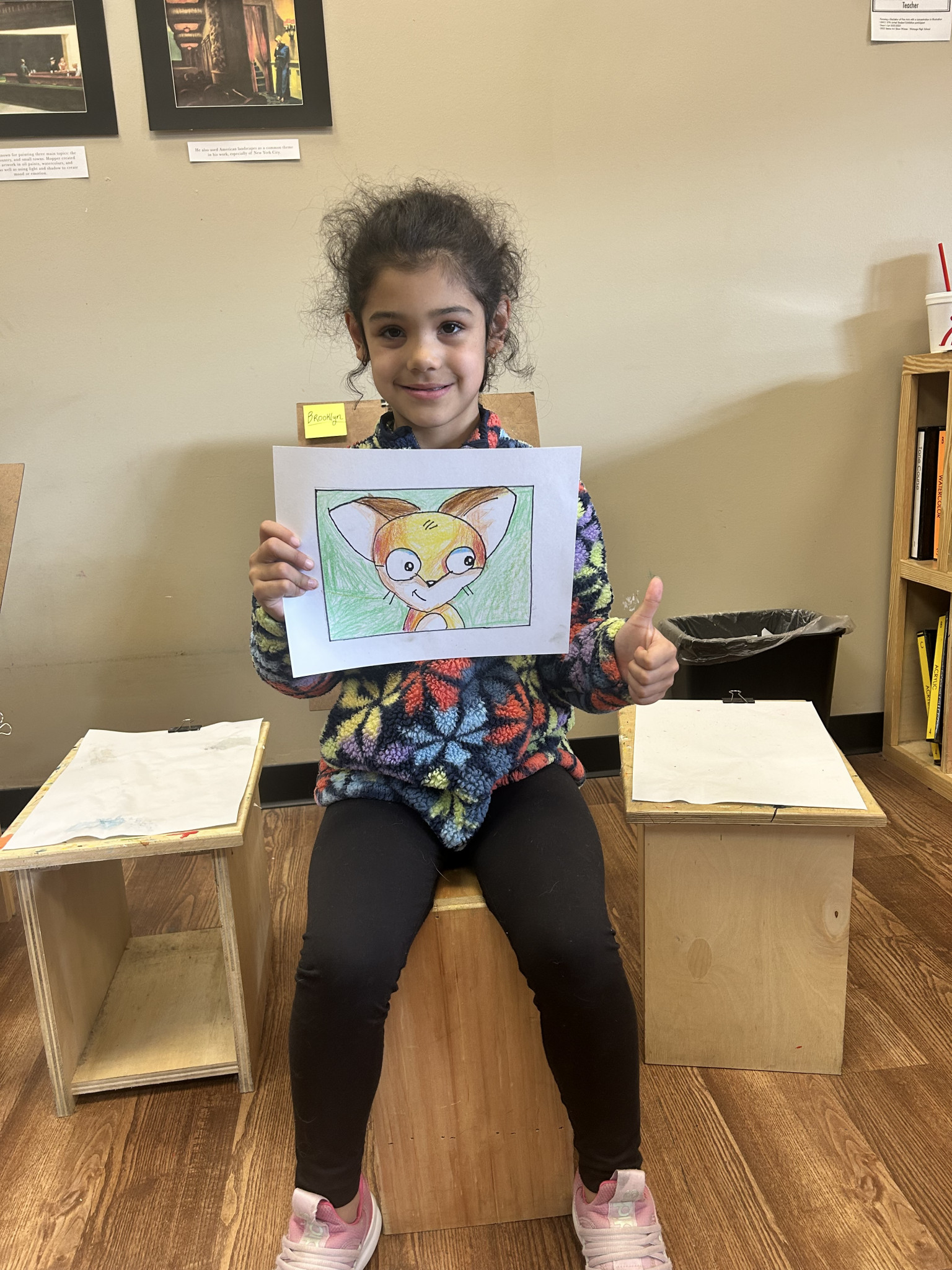 What is Brooklyn's favorite art form?Right now, she uses a mixture of pencils, charcoal, crayons, and markers mostly. She does love a chance to paint, though. She is drawn to whimsical make-believe characters and portraits of those she loves the most.