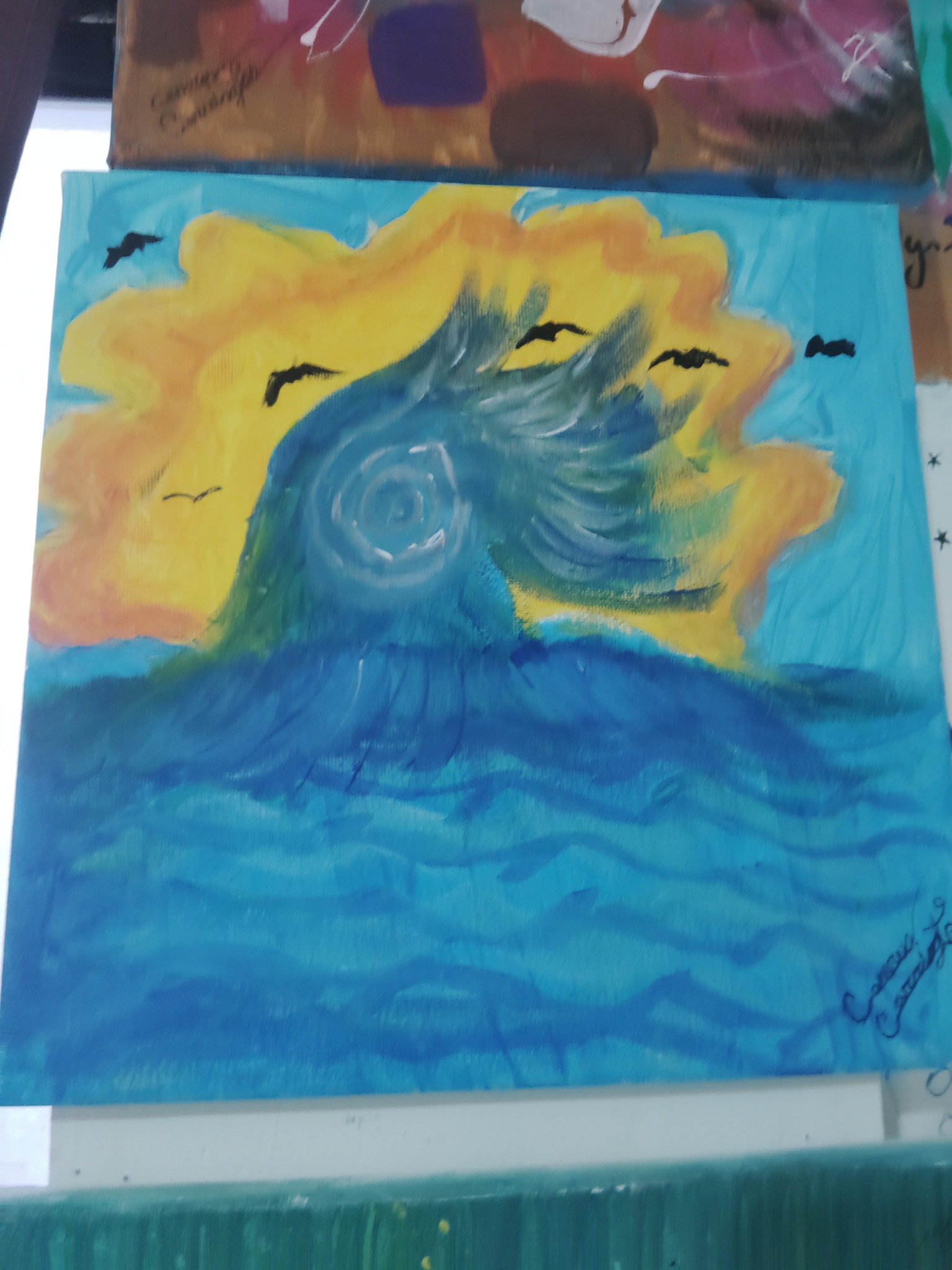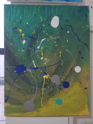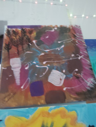 A ray of sun over the ocean, or Darkness in a quiet bedroom. He's known for his abstract and creativity with texture and cohesiveness. Camrens art work can be fun and striking using colors and line symmetry.