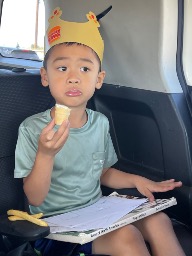 He loves drawing and imagination play. In drawing, he has his own style already.