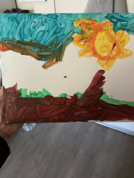 Clover’s artwork is full of bright colors, big feelings, and wild imagination. She loves painting rainbows, animals, and magical worlds where anything can happen. Her art is joyful, bold, and completely from the heart. Every piece tells a story only Clover could dream up.