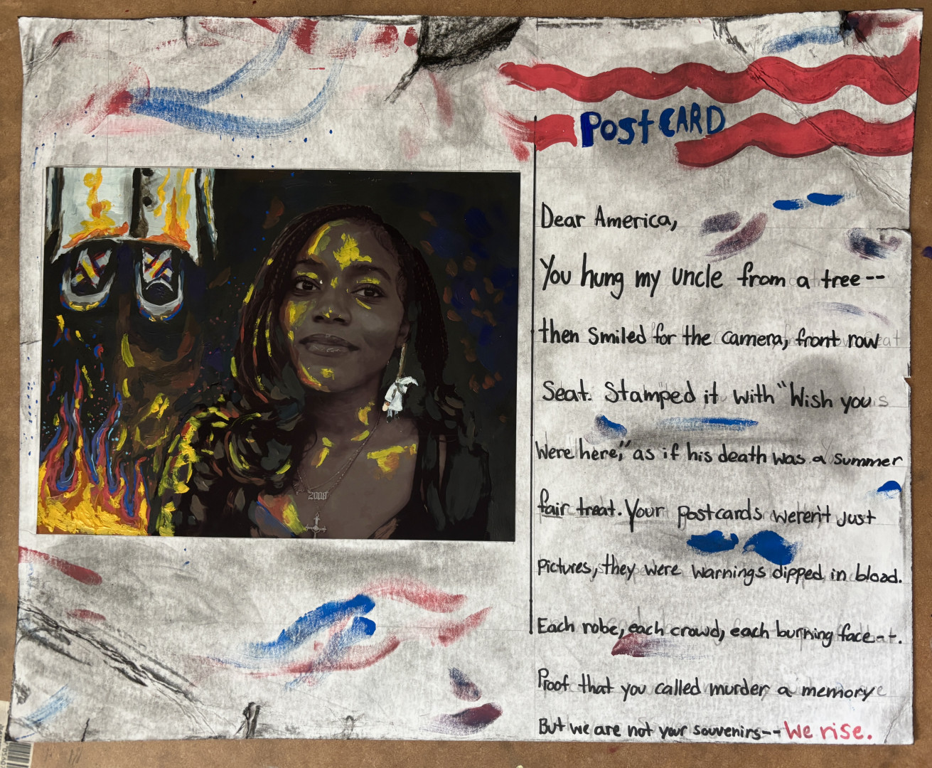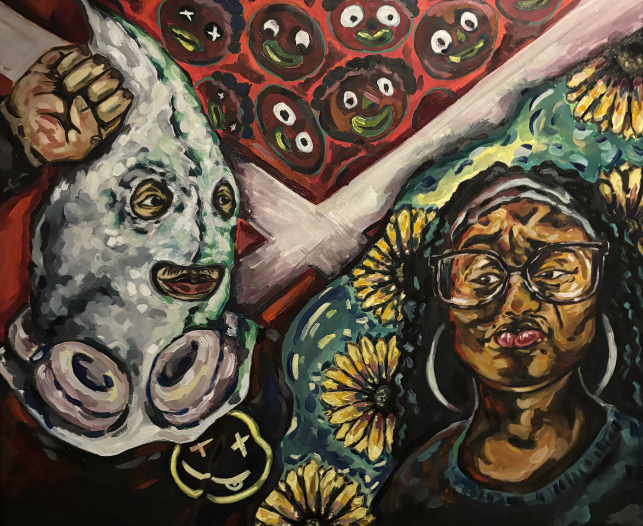 D’Ziyre uses bold brushwork and fearless honesty to create powerful paintings that confront identity, history, and truth