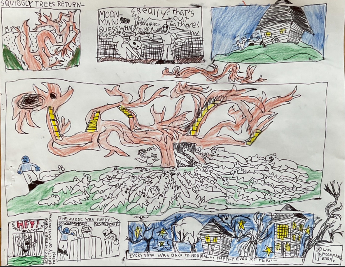 Who or what inspires Desmond to create?Desmond is honestly inspired by Bob Ross, the show relaxes him and he often watches before bedtime, he knows all the episodes by heart and often exclaims “he’s SO GOOD” multiple times during an episode. Otherwise he’s also inspired by outerspace books, cartoons…he loves Wallace and Gromit, we went to the Alexander Calder circus exhibit recently and he loved that. Desmond is also inspired by nature, we live in the woods. He loves the Museum of Natural History.. his inspiration runs deep and wide.
