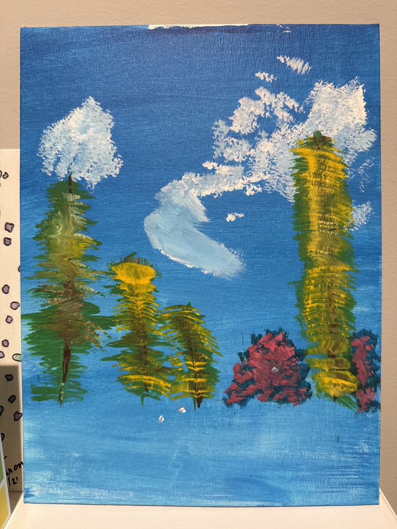 Who or what inspires Devin to create?He’s always been interested in painting and absolutely loves watching Bob Ross. It’s one of his favorites. It’s the only thing that calms and sues him.
