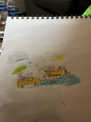 My son Devin has loved art for as long as I can remember and love Bob Ross. He carries his art with him everywhere.
