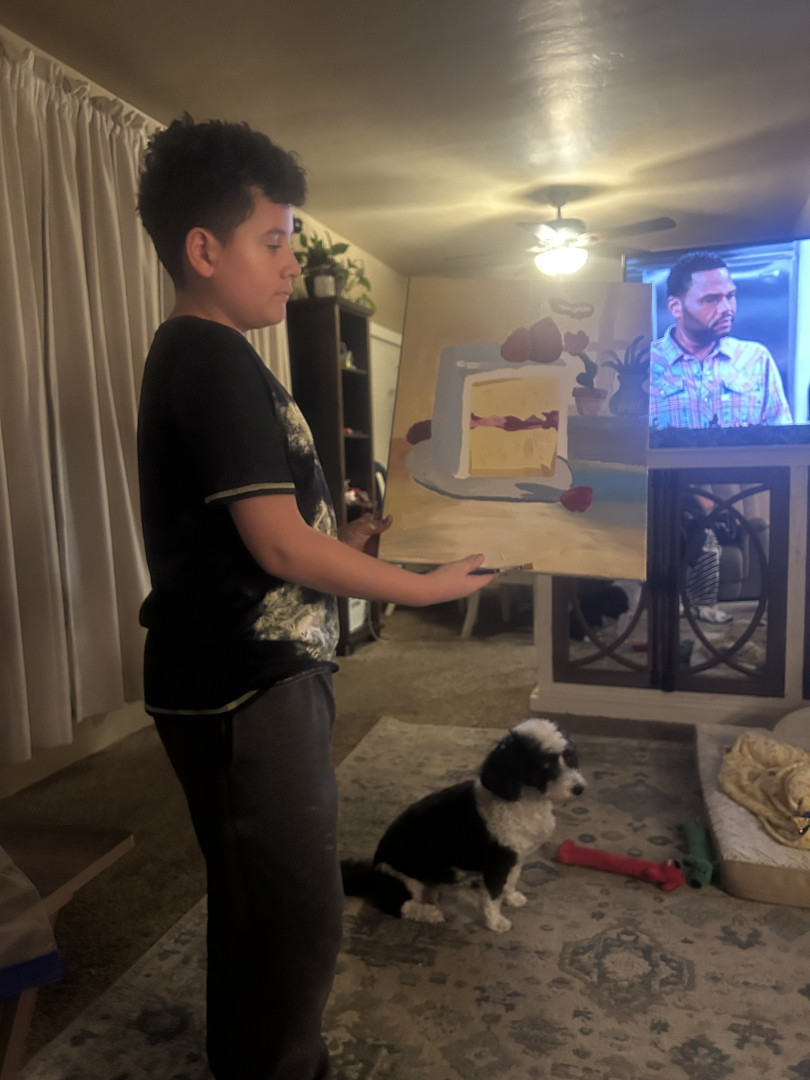What is Elias's favorite art form?Elias creates bold, expressive artwork filled with emotion, movement, and imagination. He loves experimenting with color, texture, and different styles, often blending realism with fantasy. Each piece reflects his unique perspective and tells a story, whether it’s inspired by people, nature, or his own creative ideas. Art is his favorite way to communicate, explore feelings, and share his world with others.