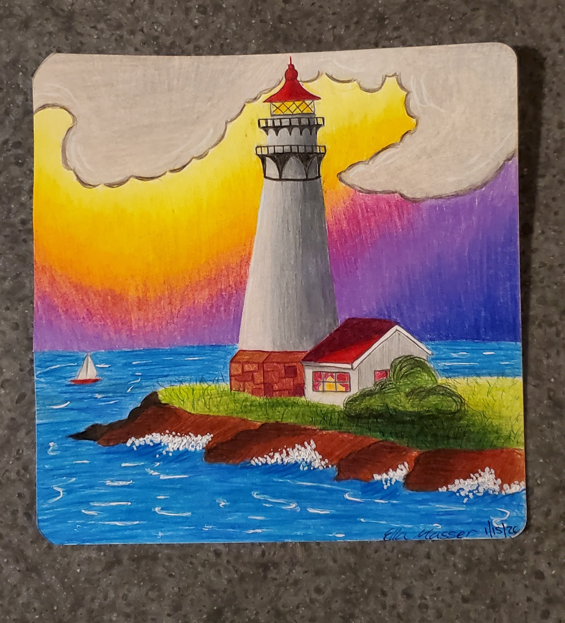 Ella stated out by drawing cartoon-like characters and has expanded to drawing scenery.