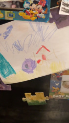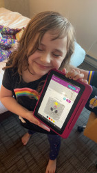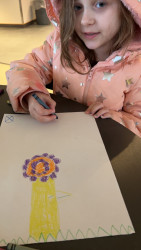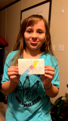 Elly loves to draw and color. She has a really fun imagination and turns everything into art.