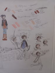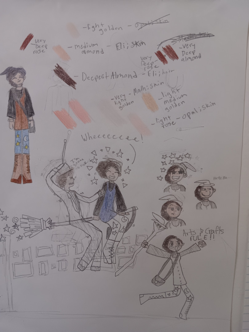 What is Evyn's favorite art form?Evyn's favorite art form is drawing. She loves to use pencils to sketch and shade, and design her characters. She loves to practice drawing faces in different perspectives and expressions. She draws outfits in her growing cartoon-like style and will use her drawings to inspire real life. She designed a witch outfit in one of her drawings and used it as the inspiration for her costume last Halloween.