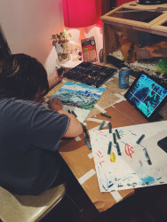franky is relentlessly creative. everything becomes an art project, even science homework assignments to explain the water cycle.