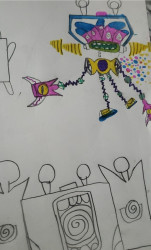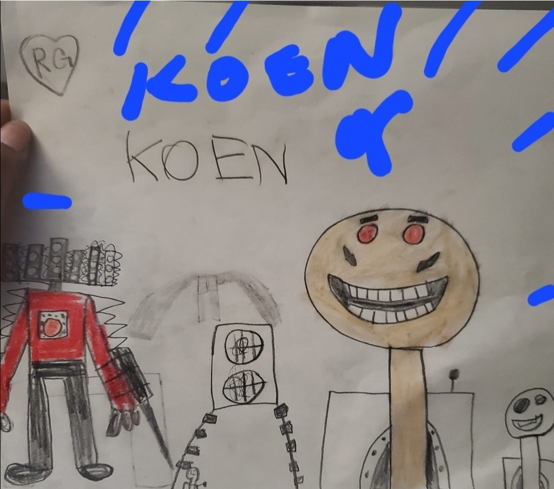 Gekorey’s artwork is bold, imaginative, and full of original characters. He loves creating colorful creatures, robots, and fantasy figures with expressive faces and unique details. His drawings show strong creativity, storytelling, and confidence in using color, shapes, and patterns to bring his ideas to life.