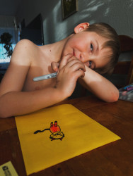 Who or what inspires Holden to create?Holden finds inspiration in his family and events from his life. Like moments of his family sledding, or on vacation. He also loves animals and loves practicing drawing and painting animals and other creatures. He likes to follow step by step instructions at times and learn new techniques but he also loves to create from his own mind and is proud of what he comes up with. He loves gifting art as a way to show friends and family that he cares.