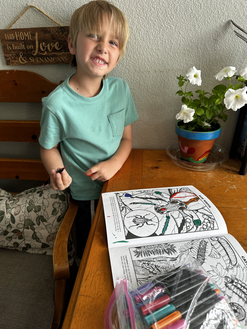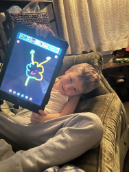 Holden loves painting and drawing. He loves arranging things in his environment like leaves or dirt or toys to make designs. He loves to take pictures of his world and treasures his photos. He is happy to color inside the lines and keep things just so, and then other times, he likes to step outside the box and create abstract designs out of something simple. He also is so appreciative of others art, he treasures art that his friends have shared with him and loves watching other people create.