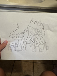 He does a lot of Lego or Dino themed drawing, he’s also done cats, self portraits and so in