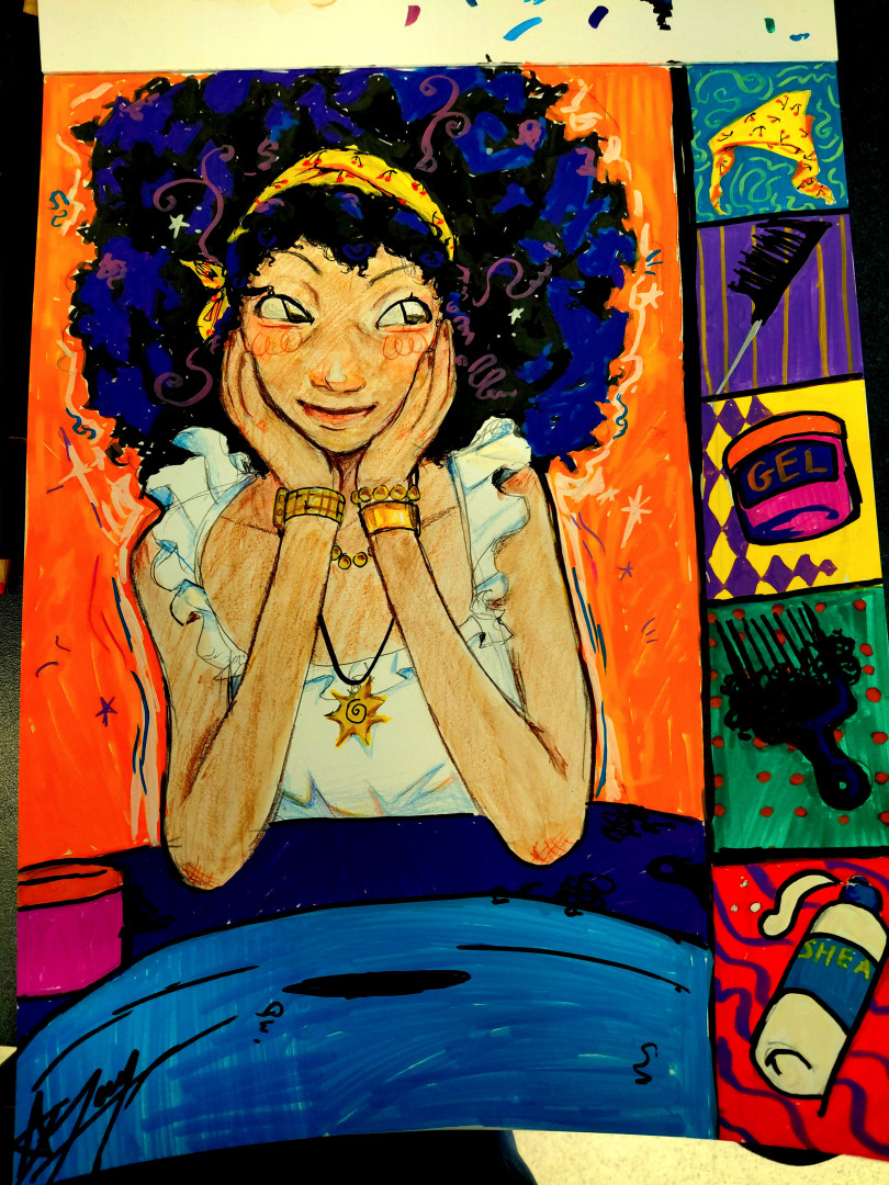 My child, Joy, is truly imaginative. Her peices come from the music around her, and her willingness to show it through art.