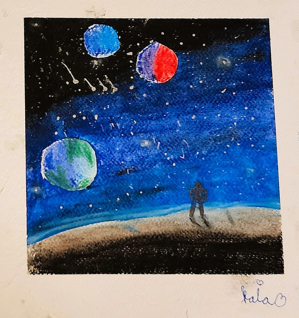 What is Kaia's favorite art form?Though Kaia explores a range of mediums, she is most captivated by oil pastels, sketching, and alcohol markers—drawn to their rich textures, fluid movement, and versatility, which allow her to build expressive lines, vibrant color, and intimate visual narratives.
