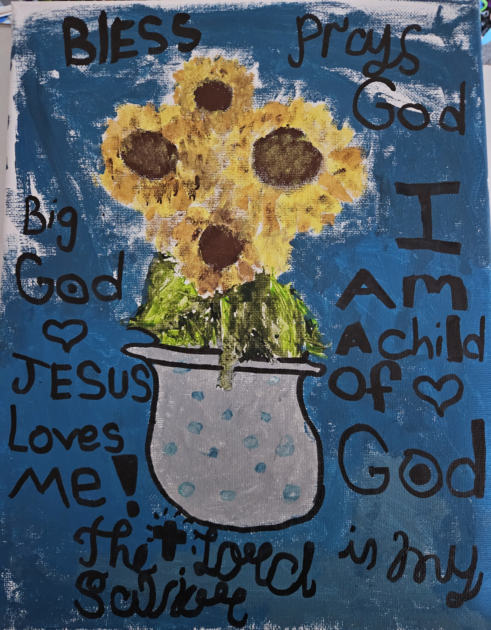 Kaylie can turn anything into art. She has been doing it since she was three. Paper,canvases, empty boxes, old cans, all into a masterpiece.