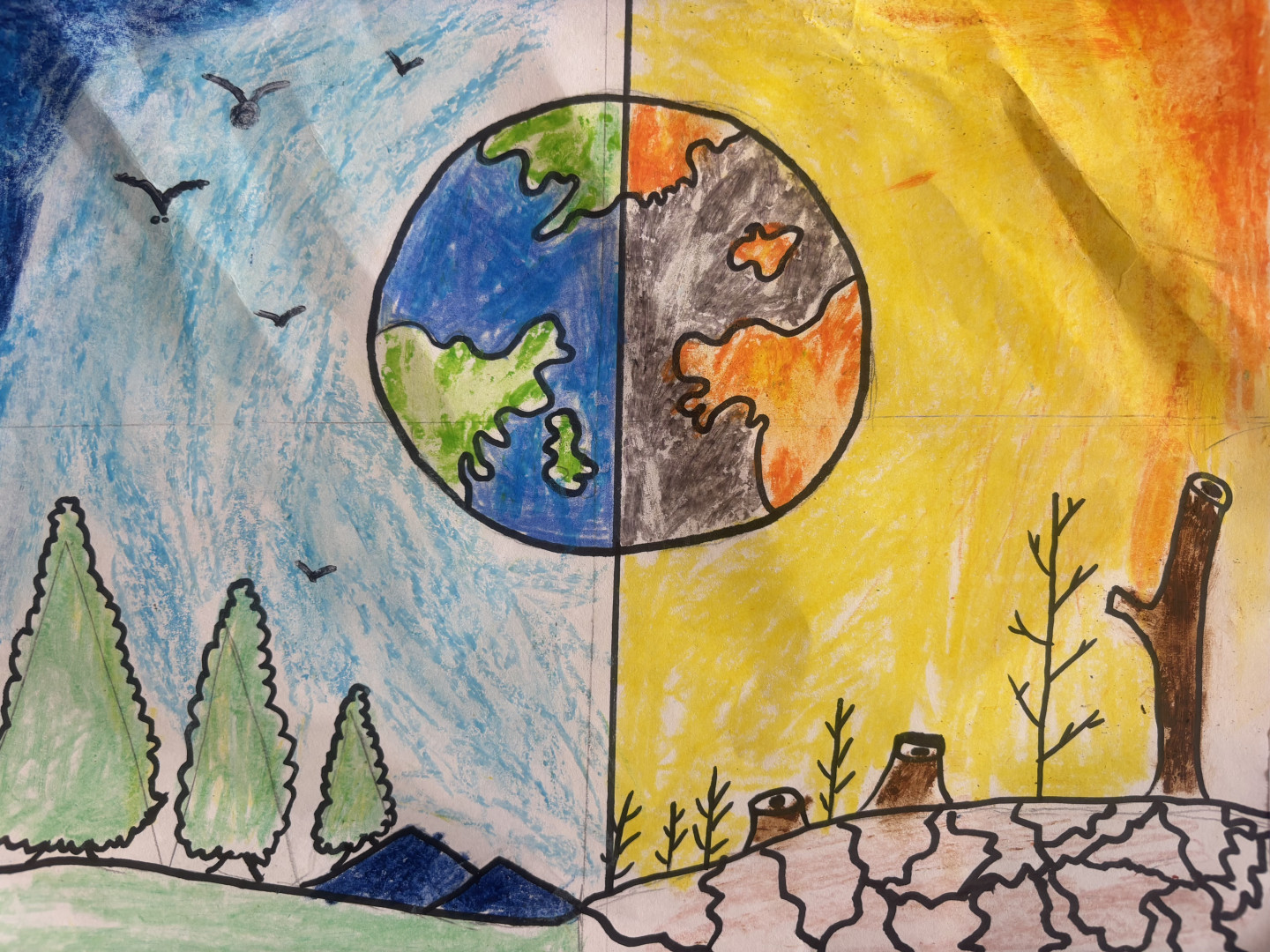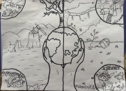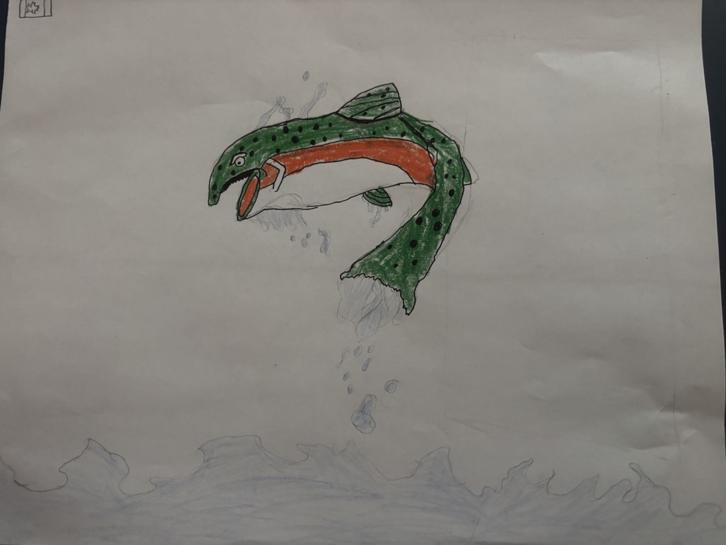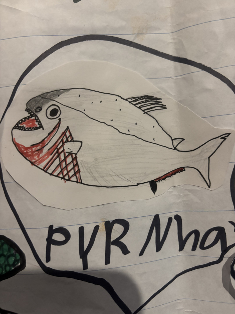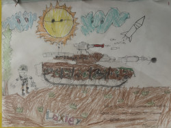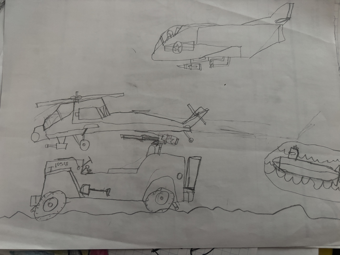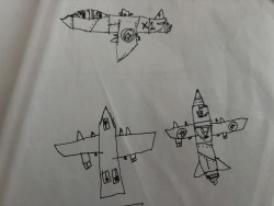 Mostly drawings of whatever his imagination thinks up at the time