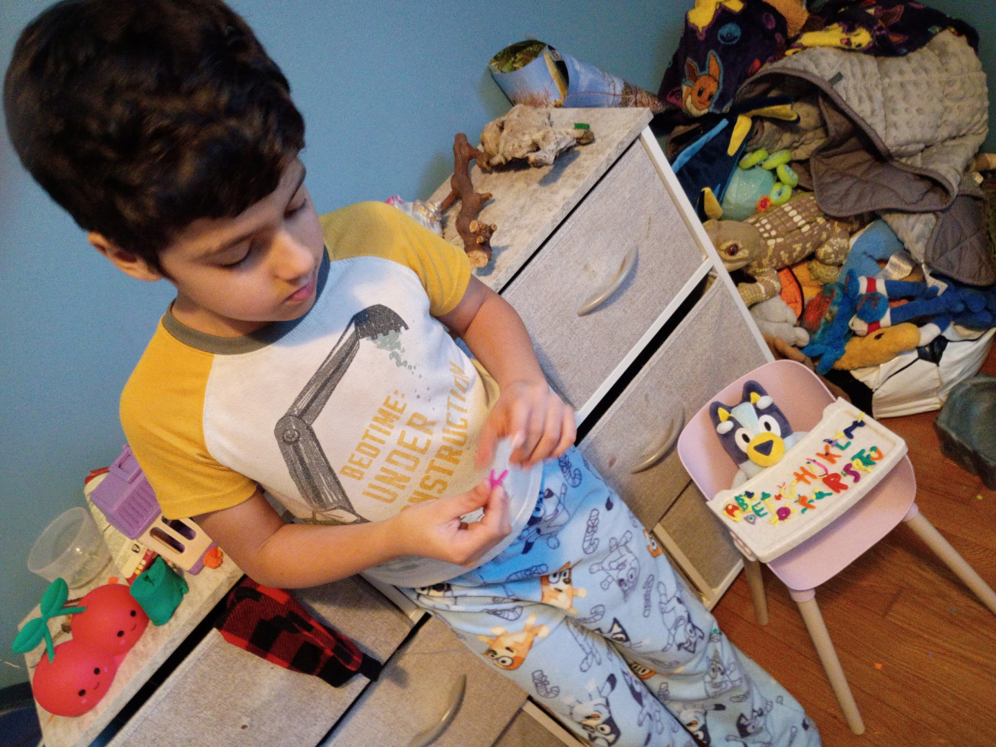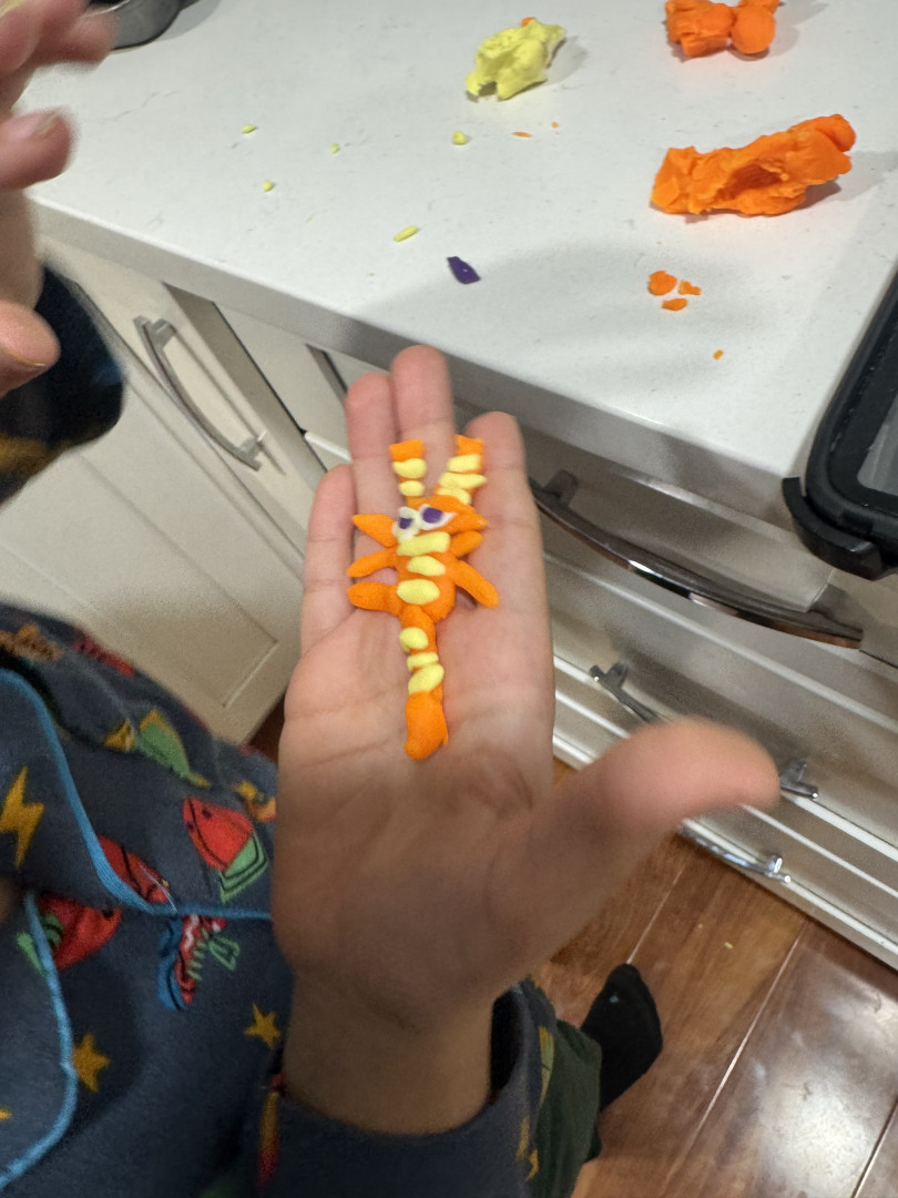 Luka is the most Artistic kid because he uses play-doh for all his artwork. He watches something and designs scenes from movies.