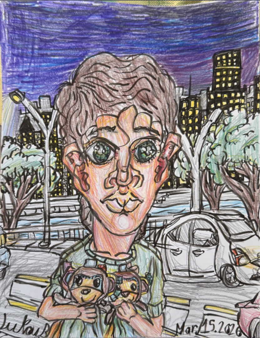 What is Lukas's favorite art form?Painting is number one. Colored pencils is a close second, he also really enjoys making art with alcohol markers, and watercolors.