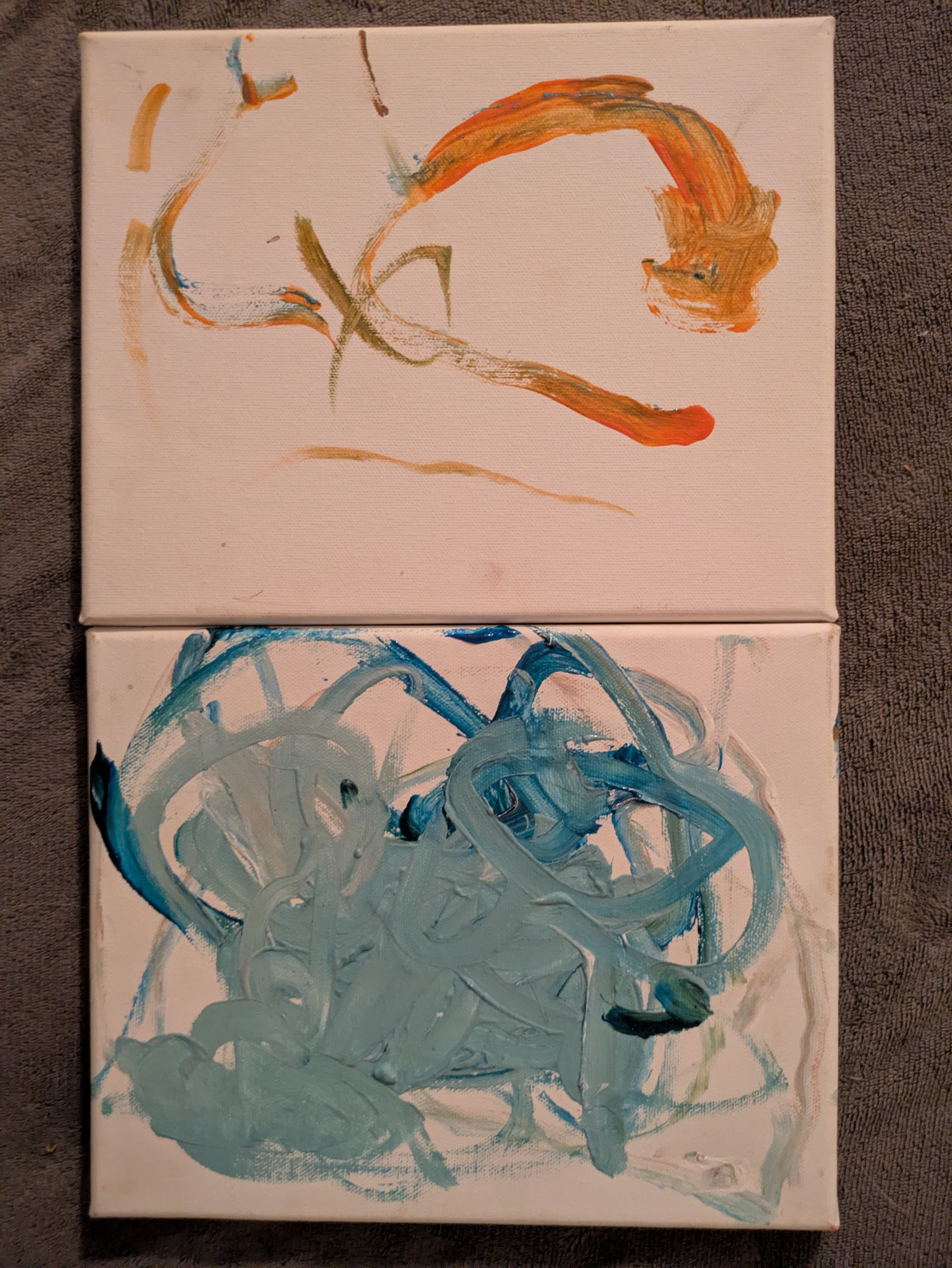 Learn MoreLuna calls this piece fire and ice. On one canvas there's a snow storm and on the other a Phoenix. This is her favorite work so far and hangs in her room. She came up with the concept and art on her own and is very proud.