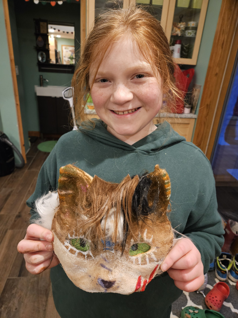 Mayla's art ebbs and flows with what she is into at the time. She can be found drawing comic book animal figures, painting sunsets and sunrises, creating animal masks with felt and accoutrements or decorating a space. She is always armed with a pencil and a sketchpad and is constantly creating something out of nothing with her vivid imagination.