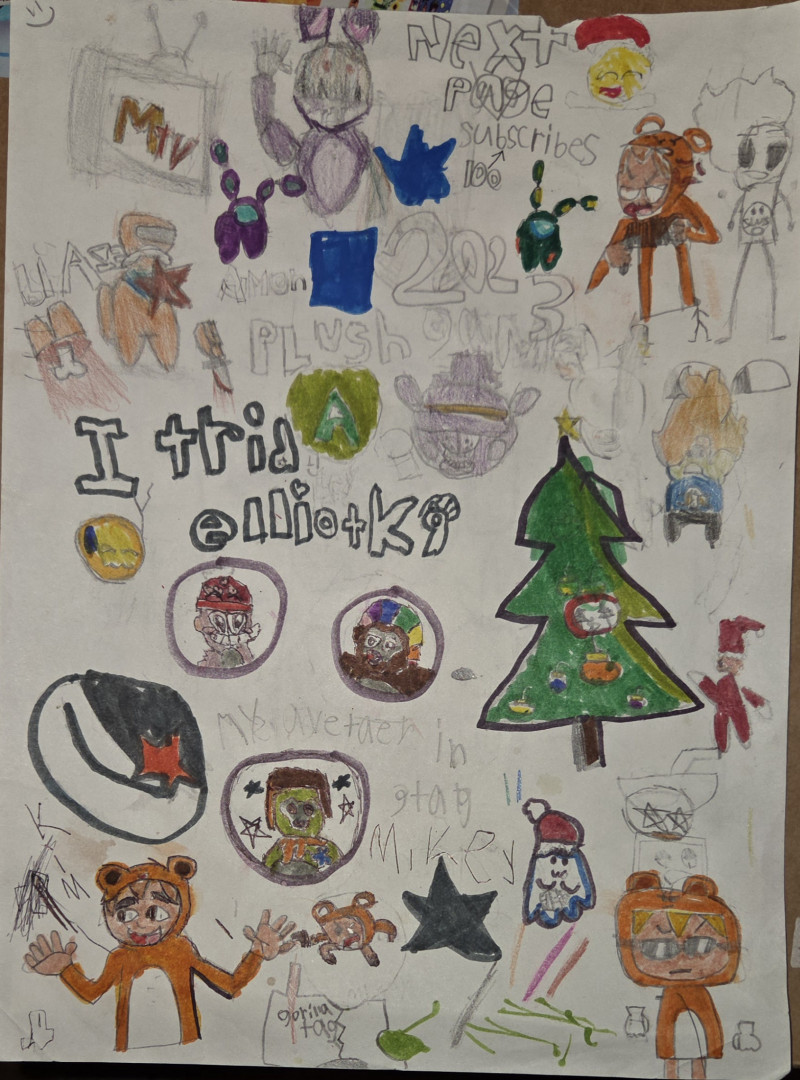 Who or what inspires Mikey to create?I believe many things inspire Mikey. He strives to make online characters his own, and his eagerness to improve is commendable. His art teacher encourages him to push his abilities, and I hope for the support of his mom and dad to create anything he wants. Mikey has complex ADHD, which gives him a remarkable ability to focus and notice details. He truly showcases beauty in his work.