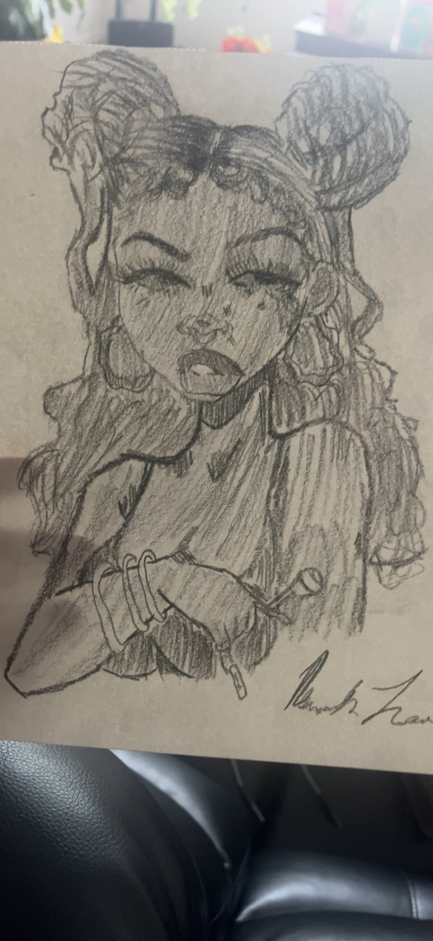 What is Nevaeh's favorite art form?Real realism with a touch of urban anime. Portraits completely out of pencil is her forte.