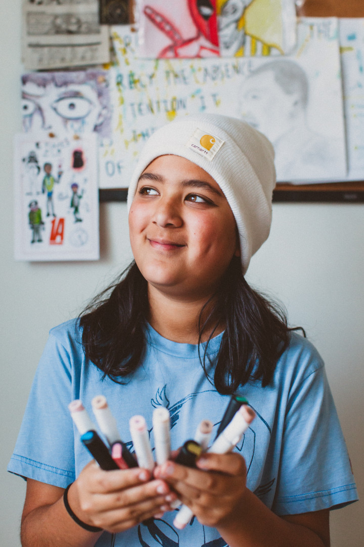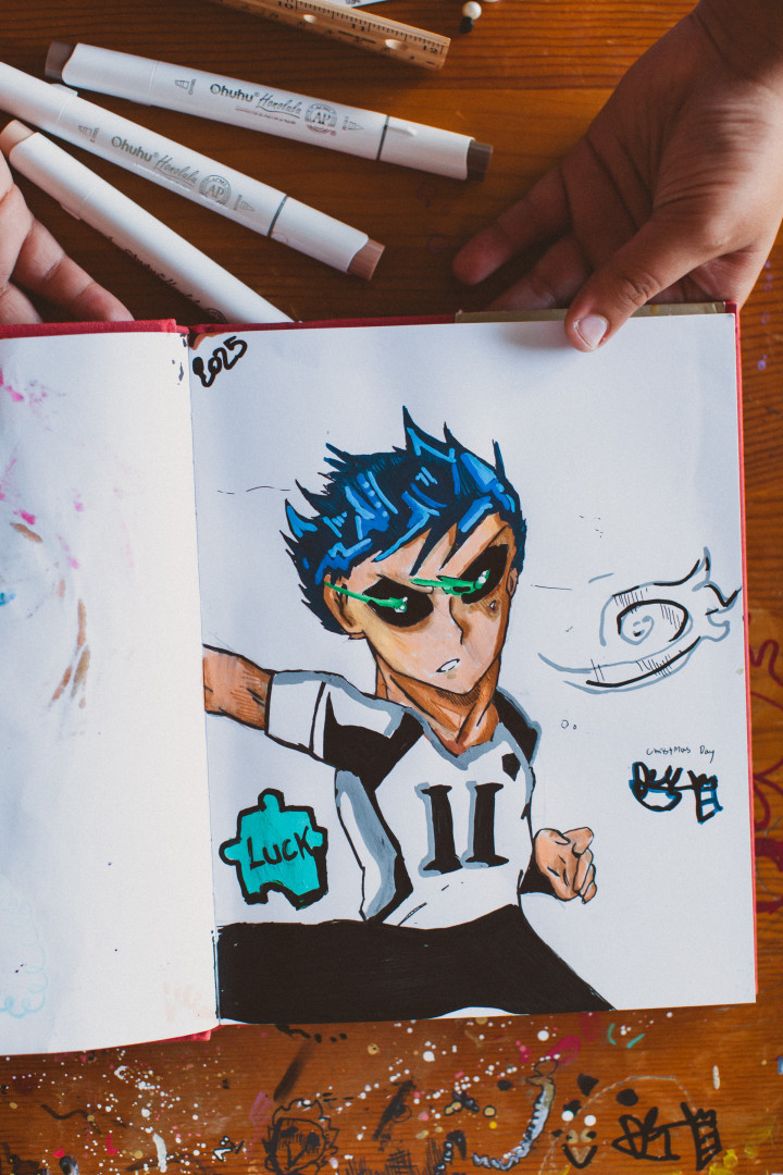 Who or what inspires Niam to create?All the books he reads are his inspiration. He also sometimes gets together with friends who like art and they will create new characters and comics together. He first started taking an interest in drawing in kindergarten during Covid. He had to do school online, and his teacher recommended watching videos of people drawing and copying them!
