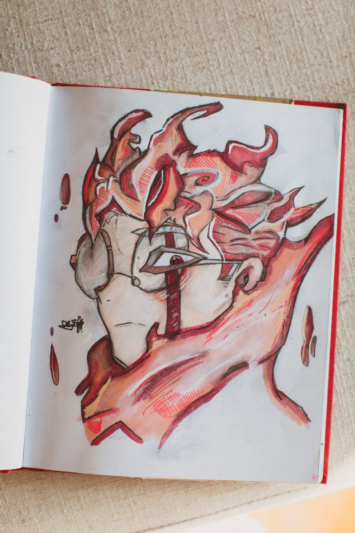 What is Niam's favorite art form?He likes to draw with pencil or pen and then color his drawings. He uses brush markers or Posca paint markers to color them. Sometimes he'll add some paint. He also loves to splatter the paint on a finished drawing to add a little pop flame to it.