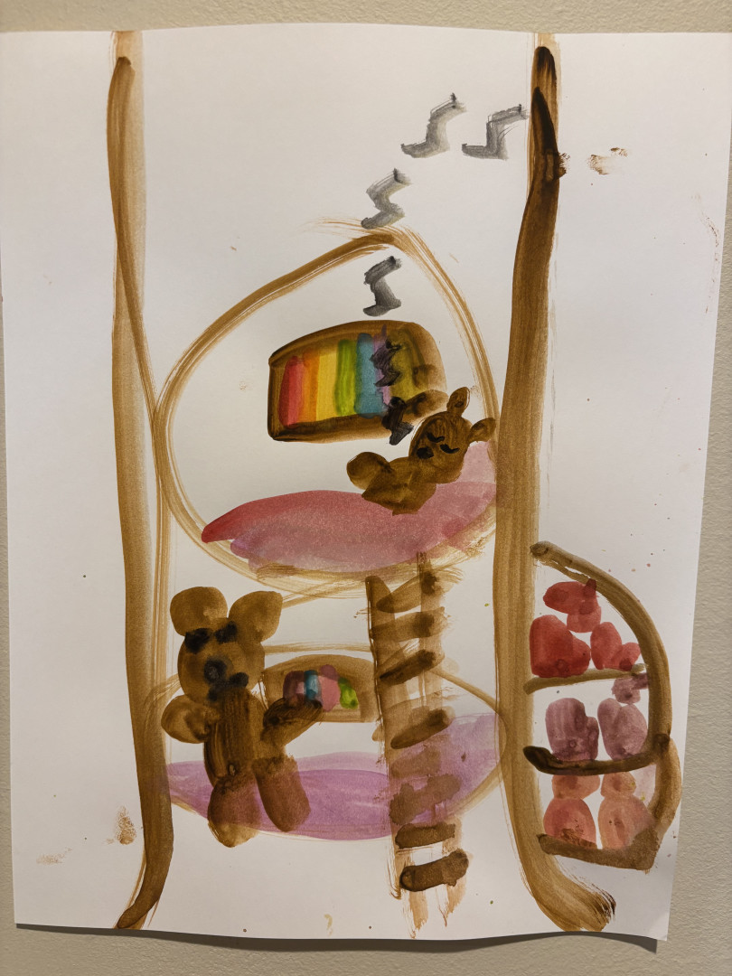 Who or what inspires Noa to create?Noa takes inspiration from her own inner and outer worlds. Frequent themes are her immediate family, including cat Pinot. As well as books, seasons, nature elements she finds and Judaism. Noa is inspired by her incredible teachers, classmates and her mom.