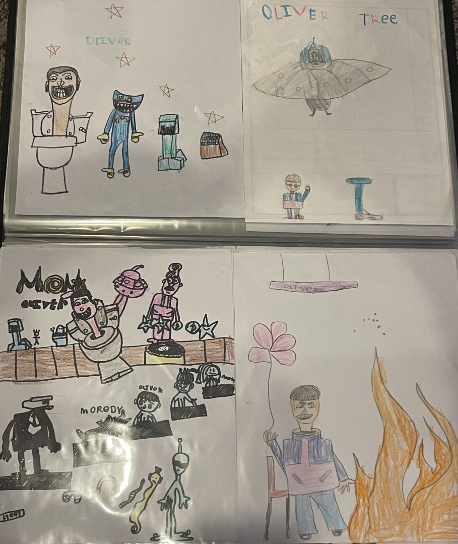 Learn MoreOliver’s artwork showcases various characters from shows/ movies, video games, outer space, musicians, athletes, animals, “Italian brain rot”, and from his own imagination.