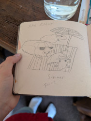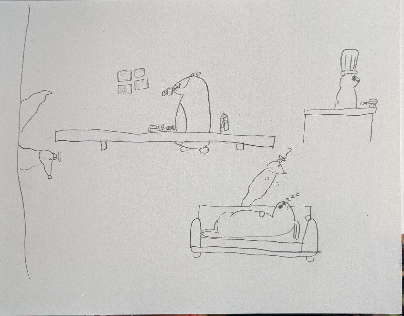 Rhone likes drawing hamsters and guinea pigs. He likes depicting animals in an imaginative alternative reality.