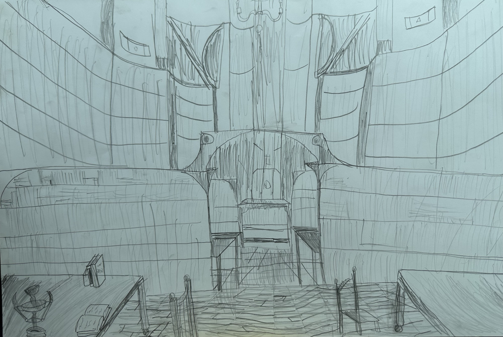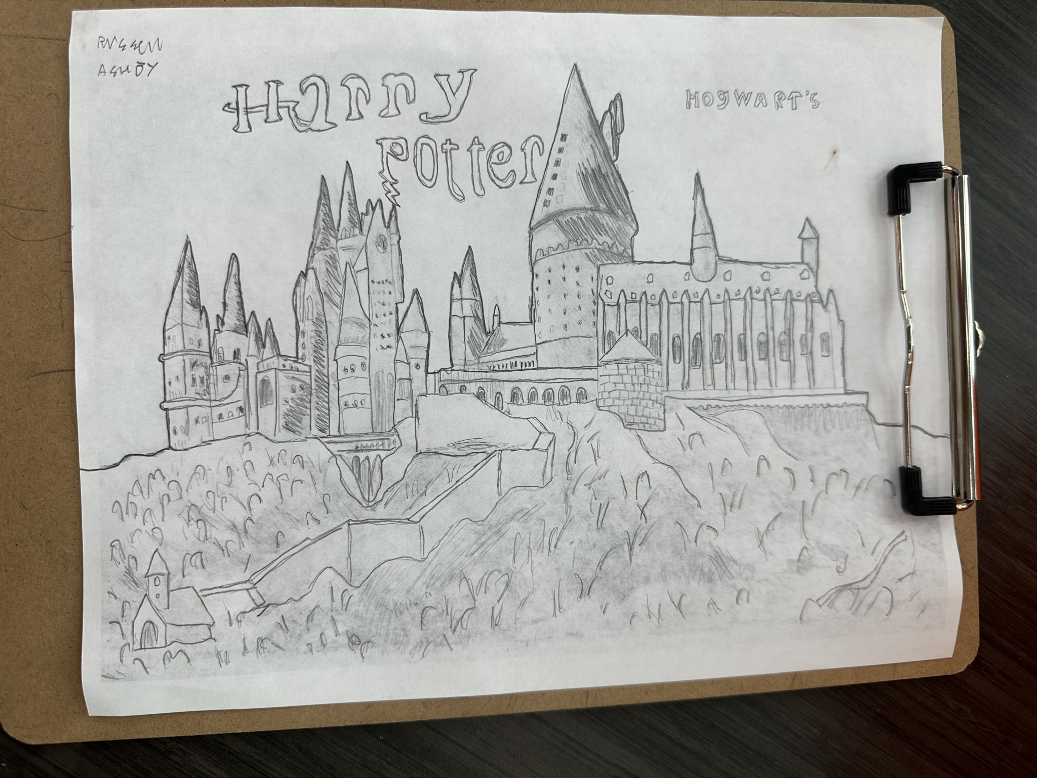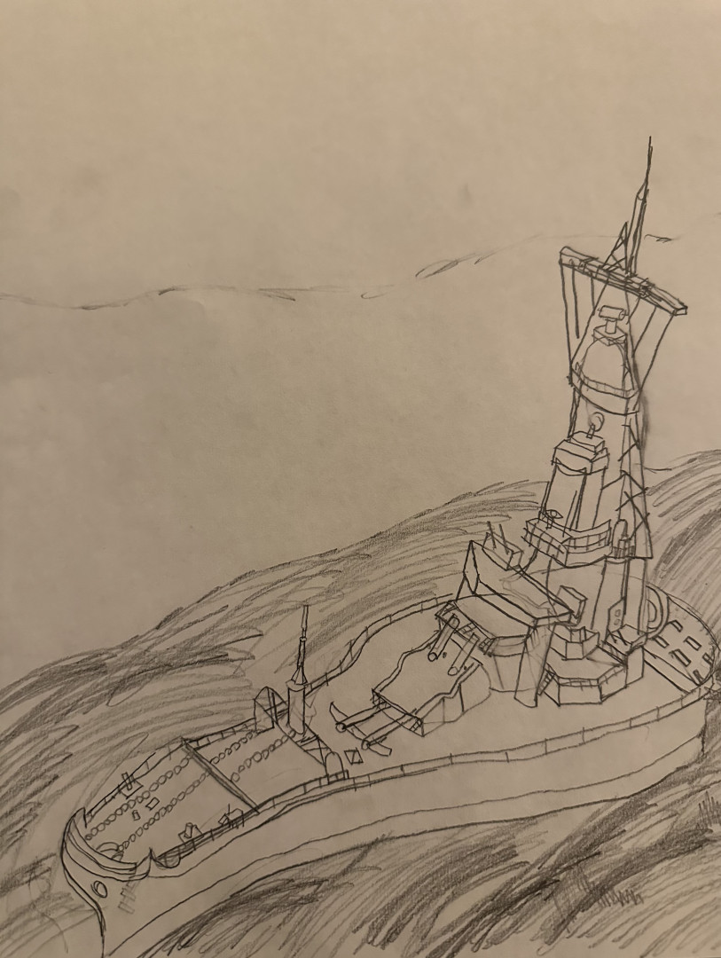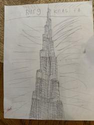 Russell likes to sketch using pencil or charcoal and has a keen eye for perspective. Architecture and ships—specifically the Burj Khalifa and the Titanic, respectively—are among his favorite things to draw, though he also does excellent characters, landscapes, and still life. He loves teaching art and has been asked at school to teach younger classes on several occasions.