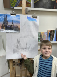 What is Russell's favorite art form?Sketching anything and everything! Whether using a reference image or drawing completely from memory, Russell’s eye for perspective, dimension, and detail are well beyond his nine years.