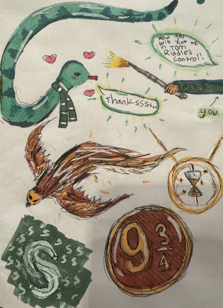 What is Sabrina's favorite art form?Sabrina's current favorite art form is drawing and sketching, but this is ever changing. She usually begins with a pencil for sketching and finalizes her pieces with paint, paint markers, oil pastels, or just pencils. When drawing characters, she favors a combined form of caricature, anime, and realism. She likes to play with proportions to showcase a detail in order to express the emotion or meaning of her art piece.