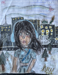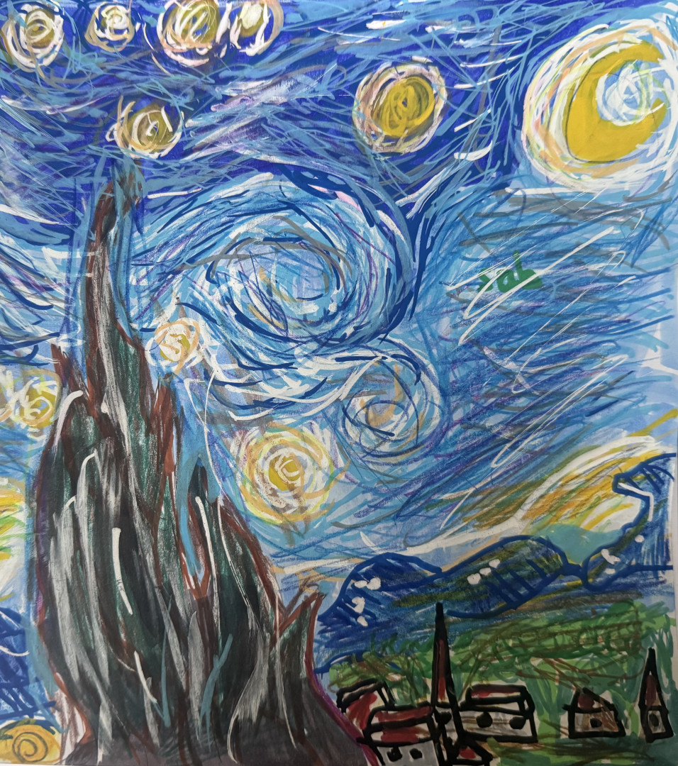 Who or what inspires Sabrina to create?Sabrina's art love took off during the COVID pandemic. She was 4 years old when she was introduced to the YouTube channel "Art for Kids Hub" by Rob Jensen - spent hours learning techniques and ultimately became obsessed with drawing. She was gifted a book on how to draw anime and was inspired to create her own anime characters and her own book. More recently she was captured visiting Museo Picasso Malaga then Van Goh's Starry Night at Museum of Modern Art in New York brought her to tears.