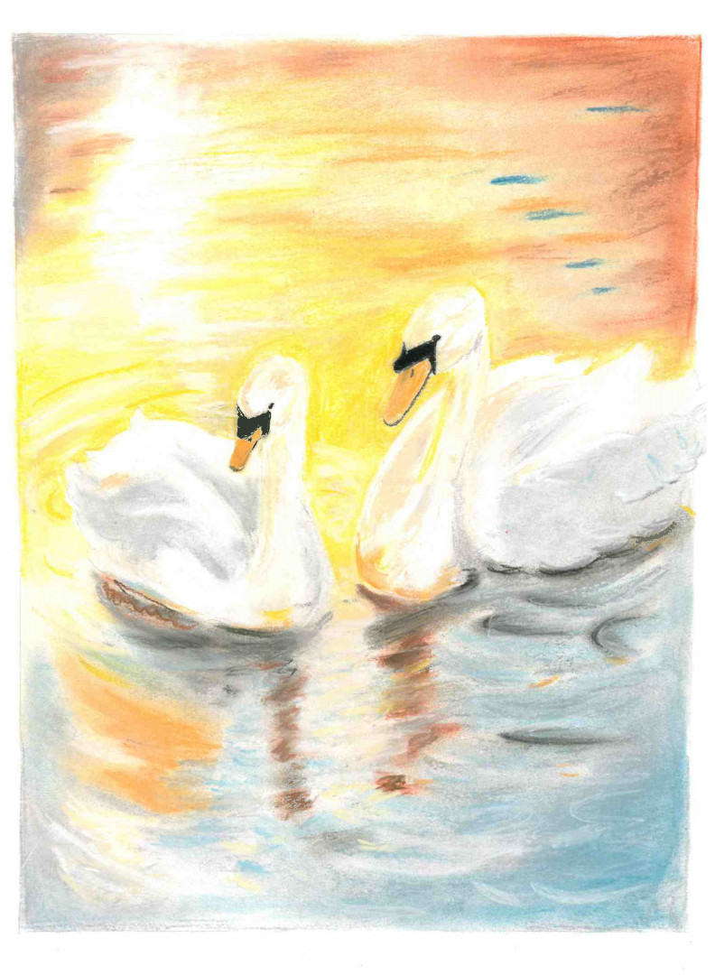 Learn MoreSamantha loves sunsets and birds. She chose to create a soft pastel painting of swans in a lake under a sunset. This was her first time using soft pastels. She chose a soft blue to balance the yellow sunset which helps balance the focus of the two swans.