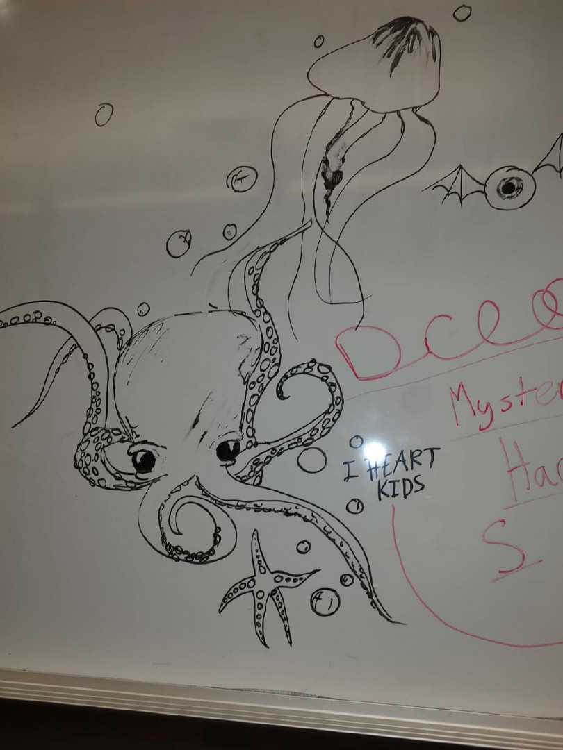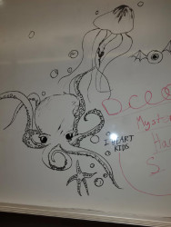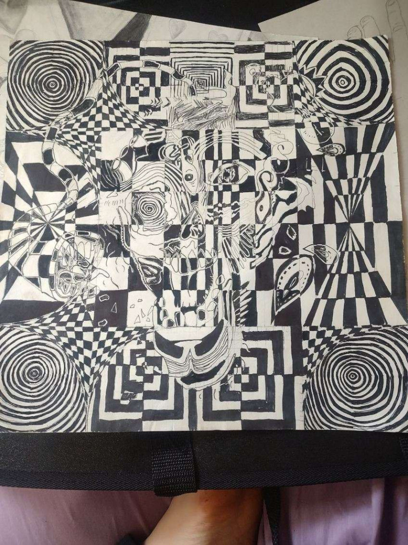 My daughter does art everywhere. Sketching and listening in class, art for the band to sidewalk chalk art. Art is her life!