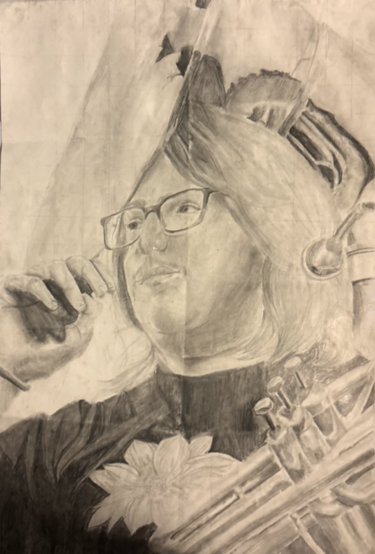 Who or what inspires Sarah to create?As an artist, Sarah's inspiration mainly comes from her interests in band as well as her friends. She draws and paints her friends from photographs she took for yearbook class, marching band and more. Her favorite part about drawing her friends is giving out her drawings to them so she can see their reaction.