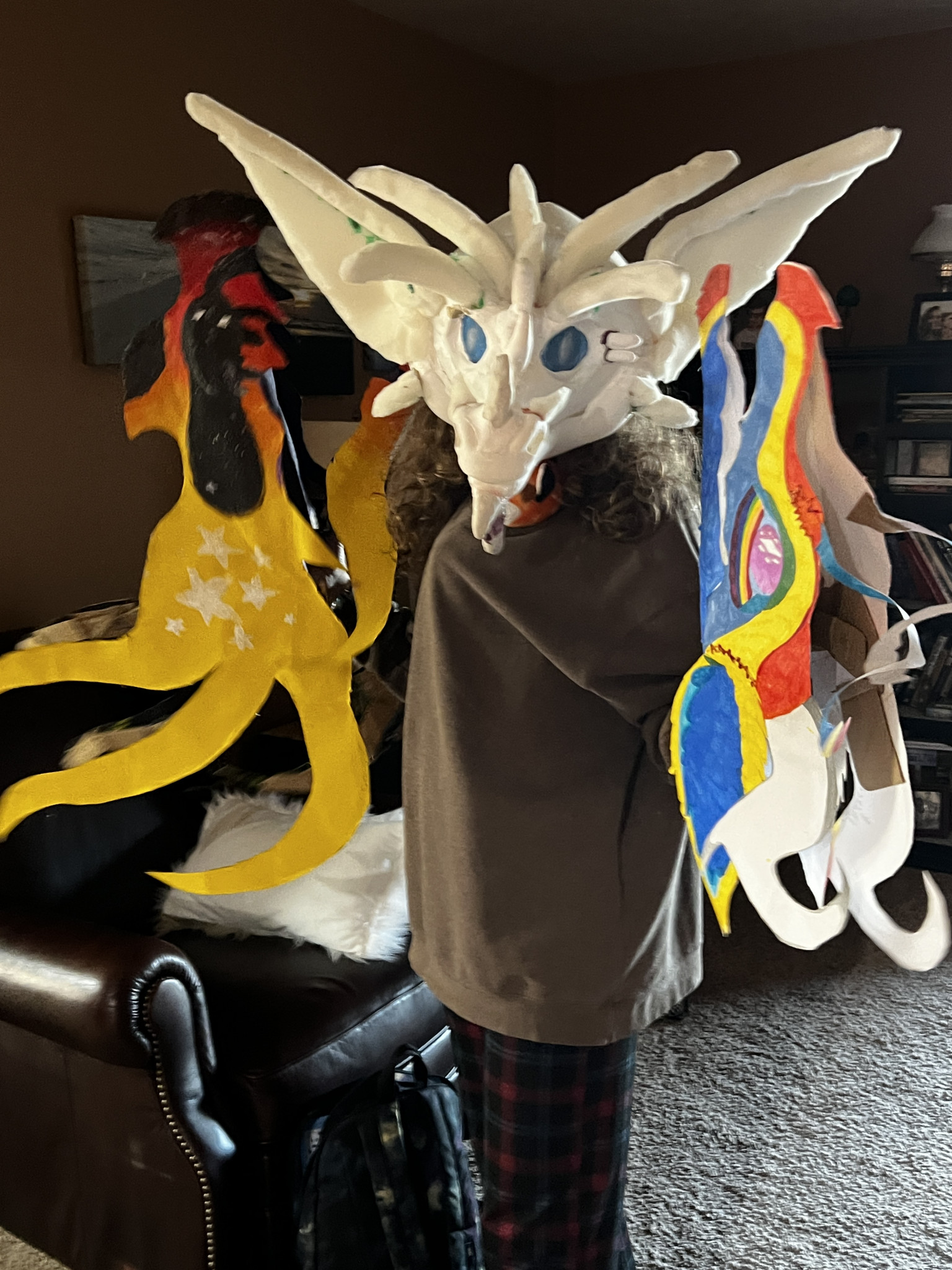 My child embodies art! They get an idea for any kind of mask and can execute it with whatever they have around them!