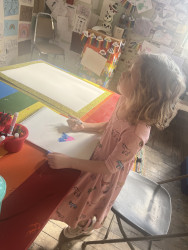 She paints, creates, loses herself in music—art is her language. Watching her express what words can’t is pure magic.