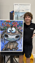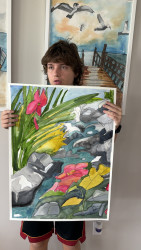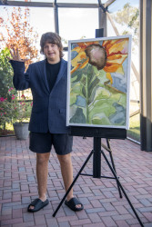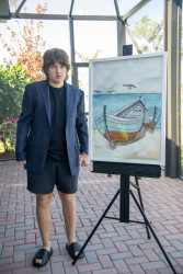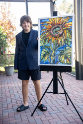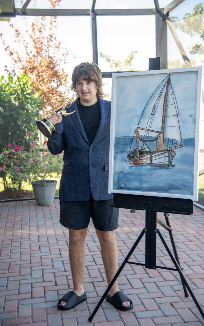 Which young artist will display their work in a museum, appear on The Joy of Painting, and win $20,000?